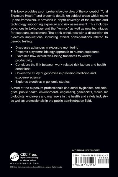 This book provides a comprehensive review of the "total exposure" concept. It offers tools and the latest in research for examining individual health with full consideration of workplace, environmental, lifestyle, and genetic factors.