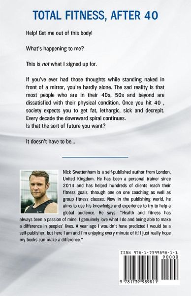 Finally discover the secrets to fitness that will transform your body and mind, even if you've never worked out a day in your life... How do you feel when you look in the mirror? Are you trapped in a body that leaves you unhappy and disappointed with what you see? With the NIH estimating that more than 1 in 3 adults are overweight, you're not alone. But it doesn't have to be this way. Maybe you've resigned yourself to the thought that this is what life will be from now on. Society tells you that midlife is the time when you start to slow down and lose your physical potential, and there's nothing you can do to stop it. The truth is, you have the power to change. According to researchers at the U.S. National Cancer Institute, it's never too late to start reaping the rewards of physical activity -- regardless of your age. While it isn't possible to reverse aging entirely, taking the right approach to your health can have you looking and feeling younger than ever before. You might have heard the phrase, "You can't teach an old dog new tricks," but that limiting mentality won't get you anywhere in life. Instead, recognize your own abilities as you discover the secrets to healthful living. In Total Fitness After 40, you will discover: * The research-based approach to fitness that has been identified as the most effective anti-aging exercise strategy * Strategies for overcoming negative self-talk -- and how reprogramming your mind will optimize your physical and emotional health * How to learn to love exercise and embrace your new fitness regimen with excitement rather than dread * An exercise database with simple, easy to follow instructions and weekly fitness plans * How you can increase your strength level by up to 40% in just 12 months without any prior experience with resistance exercise * What the FITT principle is and how you can use it to create the ideal workout program for your specific fitness goals and abilities * Everything you need to know about nutrition, from building a balanced meal plan to calculating your exact caloric needs without using complicated math * The key to setting yourself up for success with goals that are measurable and realistic -- and the crucial phrasing that will make all the difference And much more. If you've been waiting for a sign that it's time to change your ways and stop making excuses, this is it. You don't need time-consuming exercise classes or expensive personal trainers -- all you need is the right perspective and understanding. Your mentality and motivation are incredibly powerful tools when wielded correctly, and you can kickstart your fitness journey starting today. If you're ready to say goodbye to old habits and hello to a happier, healthier you, then scroll up and click the "Add to Cart" button right now.