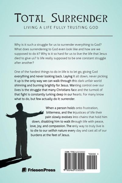 Three years prior to writing "Total Surrender" Matthew Terrill could barely read or write. Despite this deficiency, God placed it on his heart to write a book conveying how we are to live life on earth, following the narrow path Jesus walked on. How was Matthew supposed to write a book when he couldn't read or write? He was a perfect messenger for God to speak through, because people would know that it wasn't Matthew who would be writing, but God through Matthew. All the glory and honor would be given to God, not human pride or selfish ambition. Throughout his life, no one knew that Matthew couldn't comprehend or articulate words, especially graduating college with a finance degree and high school with honors. Even though Matthew hid these weaknesses well, God wanted to use Matthew as a vessel to show what He can accomplish through a willing heart. This book is not written from human wisdom or intellect, but from the divine wisdom and knowledge that comes from God. For nothing is impossible with God and this book is proof that God can use anyone to be an instrument to encourage, love, and lead people to Him (Philippians 4:13).