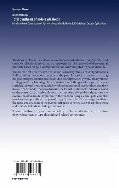 This book explores efficient syntheses of indole alkaloids based on gold-catalyzed cascade cyclizations, presenting two strategies for total synthesis of these natural products based on gold-catalyzed reactions of conjugated diyne or ynamide.