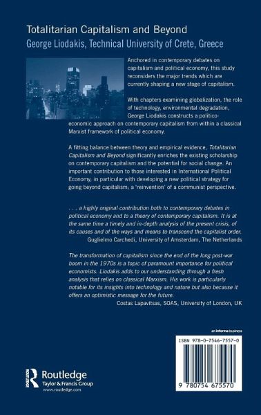 Contents: Preface Introduction Accumulation of capital and uneven development Historical periodization and the current restructuring of capitalism The basic trends and characteristics of the emerging totalitarian capitalism The role of the state in historical perspective The role of technology in the reproduction and/or supersession of capitalism Environmental implications of capitalism and the preconditions of reconciliation with nature Moving beyond totalitarian capitalism: the prospects of Communism today Political guidelines for a society of associated producers Transnational prospects of social emancipation In place of an epilogue References Index