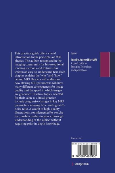 "Totally Accessible MRI provides an introduction to the principles of magnetic resonance (MR) imaging physics and practical use of MR imaging technology. ... It will probably be most useful to residents beginning their MR rotations particularly those with an interest in neuroradiology. It also provides a concise review for my one interested in a deeper understanding of MR imaging and it is likely that even expert users will pick up a few pearls along the way." (James F. Glockner, Radiology, Vol. 255 (2), May, 2010)