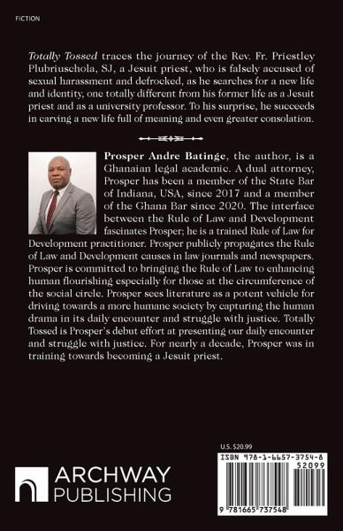 Totally Tossed traces the journey of the Rev. Fr. Priestley Plubriuschola, SJ, a Jesuit priest, who is falsely accused of sexual harassment and defrocked, as he searches for a new life and identity, one totally different from his former life as a Jesuit priest and as a university professor. To his surprise, he succeeds in carving a new life full of meaning and even greater consolation.