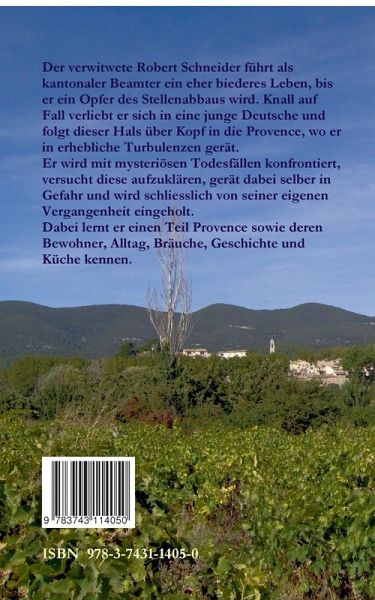 Der verwitwete Robert Schneider führt als kantonaler Beamter ein eher biederes Leben, bis er ein Opfer des Stellenabbaus wird. Knall auf Fall verliebt er sich in eine junge Deutsche und folgt dieser Hals über Kopf in die Provence, wo er in erhebliche Turbulenzen gerät.Er wird mit mysteriösen Todesfällen konfrontiert, versucht diese aufzuklären, gerät dabei selber in Gefahr und wird schliesslich von seiner eigenen Vergangenheit eingeholt. Dabei lernt er einen Teil Provence sowie deren Bewohner, Alltag, Bräuche, Geschichte und Küche kennen.