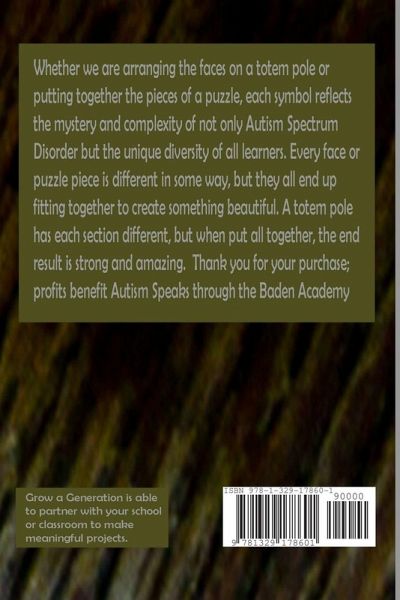 Second graders studied Native American art in the Baden Academy Calliope program. Students learned about Totem Poles carved from trees that feature human and animal characters from a Native American story. Each story begins with the character at the base of the totem pole and continues up toward the top. The students wrote their own story, focusing on the importance of sequencing, and also drew and colored character faces that were attached to cardboard tubes to create their own totem poles. Students then typed their stories learning to use basic keyboarding skills. Teachers and students had a great time bringing you these wonderful tales. Profits from the sale of this book benefits Autism Speaks.