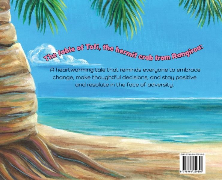 Join Toti, a cheerful hermit crab from the serene shores of Rangiroa, on an unforgettable adventure of change and self-discovery. One day, Toti feels a strange discomfort-a sign that she has outgrown her beloved shell. Unsure and scared of what's to come, Toti seeks the wisdom of her elder, Mata, who encourages her to embark on a journey to find a new, more fitting shell. Through the rhythm of the ocean waves and the guidance of kind friends, Toti learns that change, while difficult, is a necessary part of growth. With determination and courage, she discovers the perfect shell, understanding that the path to something new is as important as the destination. This heartwarming tale teaches young readers the value of embracing change, staying positive, and trusting in their inner strength. Filled with vibrant illustrations and timeless lessons, Toti's New Shell is an inspiring story for anyone who has ever faced a big change in life.