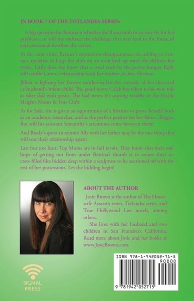 IN BOOK 7 OF THE TOTLANDIA SERIES: For the women of Totlandia, spring brings new life and emotional renewal. The births of Lorna's twins brings depression-over Dante's future. The decision she makes will drive a wedge between her and Matt. As for Jillian, she's working harder than ever in launching Life of Pie. The good news: Caleb has taken to his new role as über-dad with gusto. The bad news: it's causing trouble in the Pacific Heights Moms & Tots Club. Also, when one of Jade's darkest secrets is exposed, her past and future collide, forcing her to makes some hard decisions regarding her life-with or without Reggie. On the other hand, Ally is afraid that the truth about her father may be the end Brady's love for her. As for Bettina: will she succumb to an easy fix for her problems, or will she embrace the challenge that may lead to the financial and emotional freedom she craves?