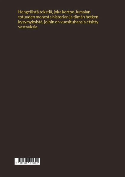 Hengellistä tekstiä, joka kertoo Jumalan totuuden monesta historian ja tämän hetken kysymyksistä, joihin on vuosituhansia etsitty vastauksia.