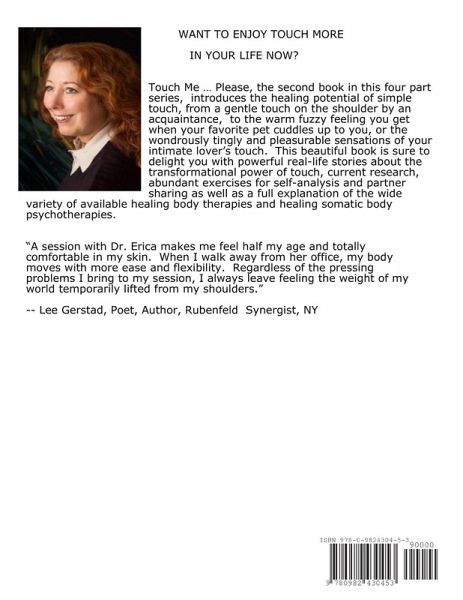 Touch Me ... Please, the second book in A four part series, introduces the healing potential of simple touch, from a gentle touch on the shoulder by an acquaintance, to the warm fuzzy feeling you get when your favorite pet cuddles up to you, or the wondrously tingly and pleasurable sensations of your intimate lover's touch. This beautiful Ebook is sure to delight you with powerful real-life stories about the transformative power of touch, current research, abundant exercises for self-analysis and partner sharing as well as a full explanation of the wide variety of available healing body therapies and healing somatic body psychotherapies.