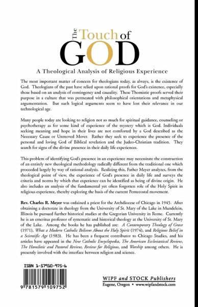Rev. Charles R. Meyer was ordained a priest for the Archdiocese of Chicago in 1945. After obtaining a doctorate in theology from the University of St. Mary of the Lake in Mundelein, Illinois he pursued further historical studies at the Gregorian University in Rome. Currently he is an Emeritus Professor of Systematic and Historical Theology at the University of St. Mary of the Lake. Among the books he has published are: 'A Contemporary Theology of Grace' (1971), 'The Touch of God: a Theological Analysis of Religious Experience' (1971), 'What a Modern Catholic Believes about the Holy Spirit' (1974), and 'Religious Belief in a Scientific Age' (1983). He has been a frequent contributor to 'Chicago Studies', and his articles have appeared in the 'New Catholic Encyclopedia', 'The American Ecclesiastical Review', 'The Homiletic and Pastoral Review', 'Review for Religious', and 'Worship', among others. He is presently involved with the interface between religion and science.
