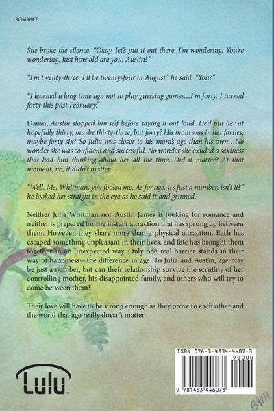 Forty-year-old Julia Whitman is finally independent after escaping from a controlling mother and an adulterous husband. Julia has left her past behind in Missouri and made a new life for herself in Scottsdale, Arizona. She and her friend Lauren have opened their interior design business, Touch of Jules, and are enjoying successful business and personal lives. Twenty-four-year-old Austin James has also escaped home in a move that has sent him across the country from North Carolina to Phoenix, Arizona, to finish college and start his own life. Neither is looking for love, but when the two meet, an attraction ignites. To Julia, Austin seems mature beyond his years; he makes her feel things she hasn't felt in a very long time. Austin is shocked when he discovers that Julia's so much older, but he knows that she holds his heart in a way no one else does. Can they defy conventional rules to forge a relationship that withstands the judgment of their families, friends, and society?