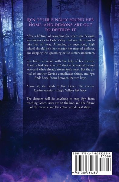 Ryn Tyler finally found her home-and demons are out to destroy it. After a lifetime of searching for where she belongs, Ryn knows it's in Eagle Valley... but war threatens to take that all away. Attending an angels-only high school should help her master her magical abilities, but stopping the upcoming battle is more important. Ryn trains in secret with the help of her mentor, Marek, a bad boy who can't decide between duty and love-and who's already stolen Ryn's heart. But the arrival of another Davina complicates things, and Ryn finds herself torn between the two boys. Above all, she needs to find Grace. The ancient Davina warrior is Eagle Valley's last hope. The demons will do anything to stop Ryn from reaching Grace. Lives are on the line, and the future of the Davina-and the entire world-is at stake.