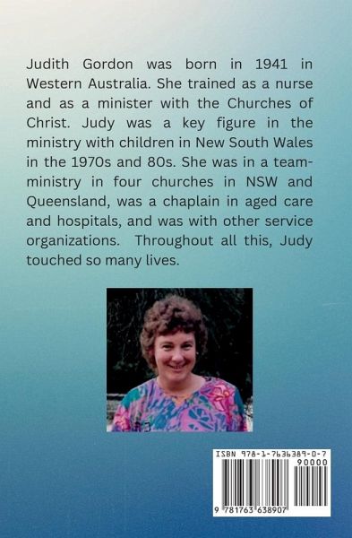 Judith Gordon was born in 1941 in Western Australia. She qualified in nursing and Churches of Christ ministry. Judy was a key figure in the ministry with children in New South Wales and lead four churches in NSW and Queensland. She was a chaplain in aged care and hospitals and was with other service organizations. Throughout all this, Judy touched so many lives.