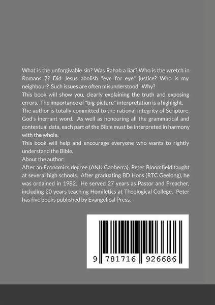 There are issues in the Bible which are commonly misunderstood. Some examples are: What is the unforgivable sin? Who is my neighbour? Was Rahab a liar? This book clearly explains the truth and exposes the errors, thus providing a helpful explanation of these matters. The author is totally committed to the rational integrity of Scripture, God's inerrant word. As well as honouring all the grammatical and contextual data, each part of the Bible must be interpreted in harmony with the whole. This book will help and encourage everyone who wants to rightly understand the Bible.
