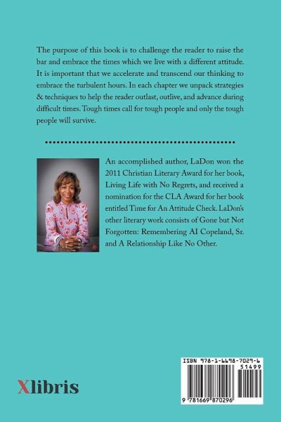 The purpose of this book is to challenge the reader to raise the bar and embrace the times which we live with a different attitude. It is important that we accelerate and transcend our thinking to embrace the turbulent hours. In each chapter we unpack strategies & techniques to help the reader outlast, outlive, and advance during difficult times. Tough times call for tough people and only the tough people will survive.