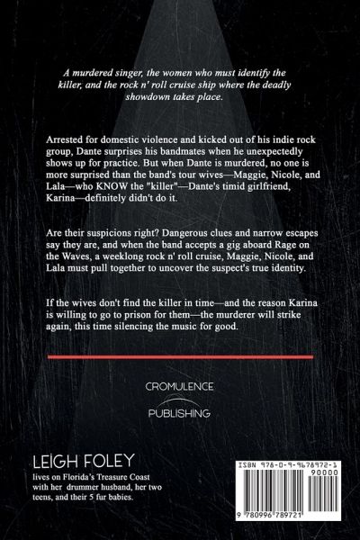 A murdered singer, the women who must identify the killer, and the rock n' roll cruise ship where the deadly showdown takes place Arrested for domestic violence and kicked out of his indie rock group, Dante surprises his bandmates when he unexpectedly shows up for practice. But when Dante is murdered, no one is more surprised than the band's tour wives-Maggie, Nicole, and Lala-who KNOW the "killer"-Dante's timid girlfriend, Karina-definitely didn't do it. Are their suspicions right? Dangerous clues and narrow escapes say they are, and when the band accepts a gig aboard Rage on the Waves, a weeklong rock n' roll cruise, Maggie, Nicole, and Lala must pull together to uncover the suspect's true identity. If the wives don't find the killer in time-and the reason Karina is willing to go to prison for them-the murderer will strike again, this time silencing the music for good.