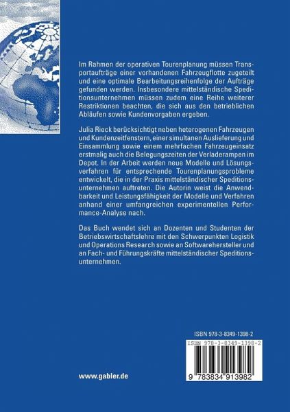 Julia Rieck berücksichtigt neben heterogenen Fahrzeugen und Kunden¬zeit¬fenstern, einer simultanen Auslieferung und Einsammlung sowie einem mehrfachen Fahrzeugeinsatz erstmalig auch die Belegungszeiten der Verladerampen im Depot. In der Arbeit werden neue Modelle und Lösungs¬verfahren für entsprechende Tourenplanungsprobleme entwickelt, die in der Praxis mittelständischer Speditions¬unter¬nehmen auftreten. Die Autorin weist die Anwendbarkeit und Leistungsfähigkeit der Modelle und Verfahren anhand einer umfangreichen experimentellen Performance-Analyse nach.