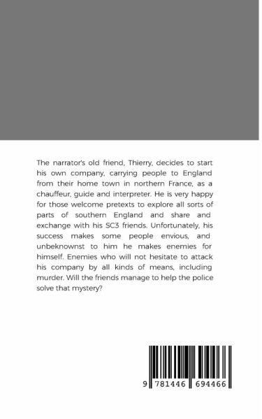The narrator's old friend, Thierry, decides to start his own company, carrying people to England from their home town in northern France, as a chauffeur, guide and interpreter. He is very happy for those welcome pretexts to explore all sorts of parts of southern England and share and exchange with his SC3 friends. Unfortunately, his success makes some people envious, and unbeknownst to him he makes enemies for himself. Enemies who will not hesitate to attack his company by all kinds of means, including murder. Will the friends manage to help the police solve that mystery?