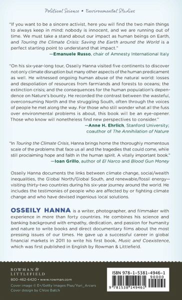 Osseily Hanna is a writer, photographer, and filmmaker with experience in more than 40 countries. He combines his science and banking background with empathy, dedication and passion for humanity and nature to write books and direct documentary films about the most pressing issues of our times. He gave up a successful career in global financial markets in 2011 to write his first book, Music and Coexistence, which was first published in English by Rowman & Littlefield.