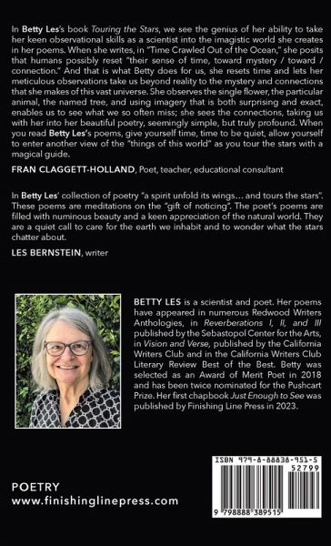 Touring the Stars brings together science, nature, and spirit, using everyday observations and spare form to capture the profound that exists all around us. The author invites readers to step into the miraculous world of nature, opening them to mysteries, insights, and connection. Birds and trees, insects, the nature of time and the consciousness of rocks are familiar themes along with memory, beauty, and loss.