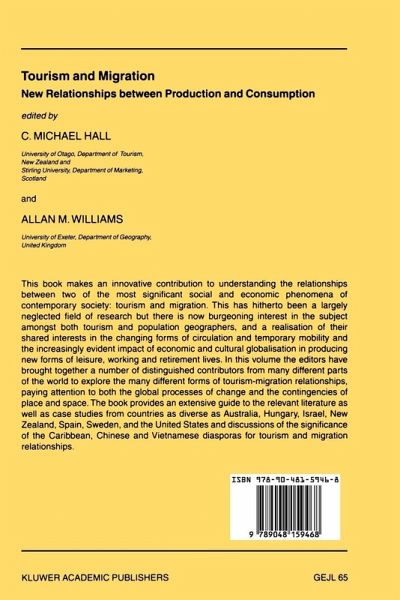 The origins of this book lie in a project of the International Geographical Union Study Group on the Geography of Sustainable Tourism. The theme, Tourism and migration', reflects the growing interests of tourism geographers - in common with other geographers and social scientists - to reach across traditional cleavages in the way research is undertaken and knowledge is formed. In this instance, the aim was to connect the largely discrete research domains of tourism studies and migration. This was informed not only by awareness of the limitations of disciplinary barriers, but also by the growing need to respond to the emergence of new forms of mobility and circulation, which fitted uncomfortably into many of the analytical categories of tourism and migration studies. The extension of property rights across boundaries (e.g. second homes, vacation homes and time shares), space-time convergence, changing approaches to work and leisure, and structural changes in economies and the demographic profiles of societies are only some of the factors which have generated these new forms of mobility. These serve to bind places and individuals in new and challenging ways with implication for both movers and stayers. The various chapters of this volume bring together a range of dimensions and locations within which to study the relationships between tourism and migration.