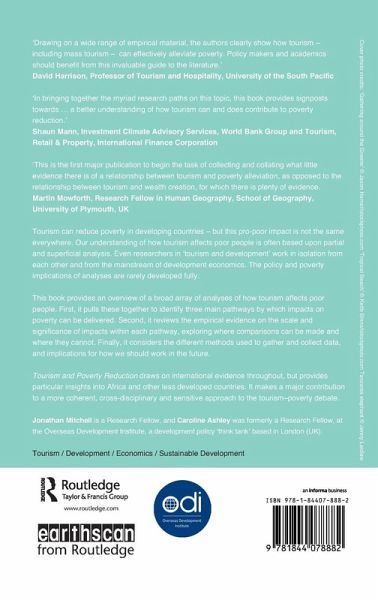 Tourism can reduce poverty in developing countries. But tourism growth is not universally inclusive of the poor. Moreover our understanding of how tourism affects the poor is largely based on partial and superficial analysis. Researchers from different disciplines and practitioners with different objectives generally work in splendid isolation from each other and from the mainstream of development economics. Detailed economic analysis remains buried and is rarely challenged for policy implications, let alone poverty implications. This book provides an overview of a broad array of analyses of how tourism affects poor people. First, it pulls these together to identify three main pathways by which impacts on poverty can be delivered. Second, it reviews the empirical evidence on the scale and significance of impacts within each pathway, exploring where comparisons can be made and where they cannot. Finally, it considers the different methods used to gather and collect data, and implications for how we should work in the future. Tourism and Poverty Reduction draws on international evidence throughout, but provides particular insights into Africa and other less developed countries. It makes a major contribution to a more coherent, cross-disciplinary and sensitive approach to the tourism-poverty debate.