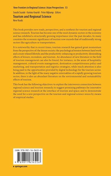This book provides new roads, perspectives, and a synthesis for tourism and regional science research. Tourism has become one of the most dynamic sectors in the economy and has exhibited a structurally growing importance over the past decades. In many countries the economic significance of tourism now exceeds that of traditionally strong sectors like agriculture or transportation. It is noteworthy that in recent times, tourism research has gained great momentum from the perspective of: the leisure society; the psychological tension between hard work and a more relaxed lifestyle; and the productivity-enhancing or productivity-diminishing effects of leisure, recreation, and tourism. An abundance of new literature in the field of tourism management can also be found, for instance, in the areas of hospitality management, cultural events management, destination competitiveness policy and marketing, and transportation and logistics strategies, while much attention is also being paidto the opportunities provided by digital technology for the tourism sector. In addition, in the light of the many negative externalities of a rapidly growing tourism sector, there is also an abundant literature on the environmental and sustainability effects of tourism. This book has the following objectives: to explore the interwoven connection between regional science and tourism research; to suggest promising pathways for innovative regional science research at the interface of tourism and space; and to demonstrate the need for a new perspective on the tourism and regional science nexus by means of empirical studies.