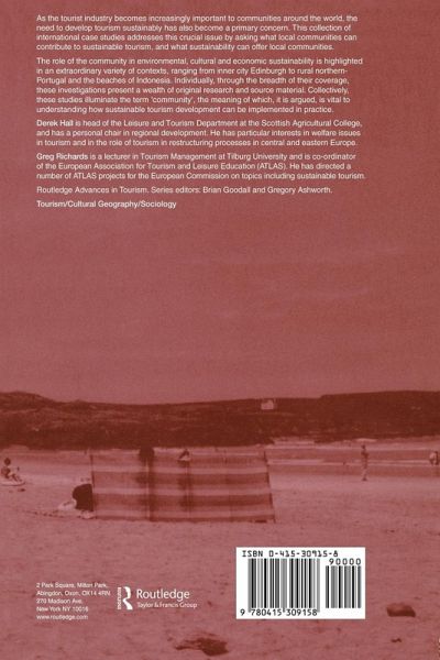 As the tourist industry becomes increasingly important to communities around the world, the need to develop tourism in a sustainable manner has also become a primary concern. This impressive collection of international case studies addresses this crucial issue by asking what local communities can contribute to sustainable tourism, and what sustainability can offer these local communities in return. The role of the community in environmental, cultural and economic sustainability is highlighted in an extraordinary variety of contexts, ranging from inner-city Edinburgh to rural northern Portugal and the beaches of Indonesia. Individually, the investigations in this text present a wealth of original research and source material, while collectively, they illuminate and clarify the term 'community' - the meaning of which, it is argued, is vital to understanding how sustainable tourism development can be implemented in practice.