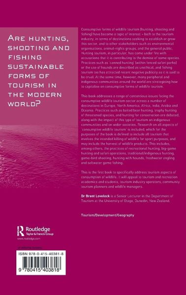 This book addresses key and contentious issues facing consumptive wildlife tourism in the twenty-first century.
