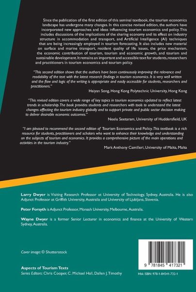 This revised edition incorporates new material on the sharing economy, AI, surface and marine transport, resident quality of life issues, the price mechanism, the economic contribution of tourism, and tourism and economic growth. It remains an accessible text for students, researchers and practitioners in tourism economics and policy.