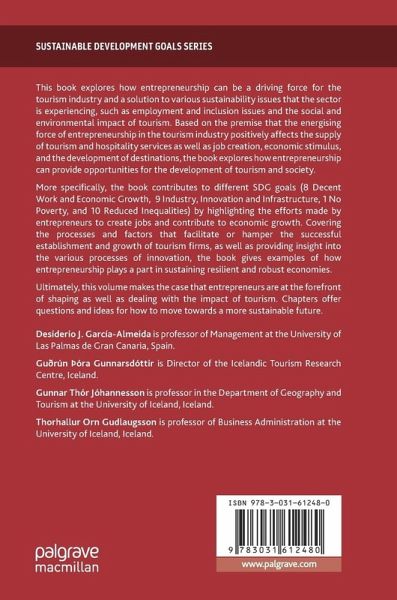This book explores how entrepreneurship can be a driving force for the tourism industry and a solution to various sustainability issues that the sector is experiencing, such as employment and inclusion issues and the social and environmental impact of tourism. Based on the premise that the energising force of entrepreneurship in the tourism industry positively affects the supply of tourism and hospitality services as well as job creation, economic stimulus, and the development of destinations, the book explores how entrepreneurship can provide opportunities for the development of tourism and society.