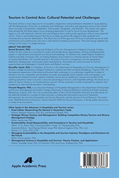 Preface. Exploring Tourism Potential in Central Asia. Competitiveness of Tourism Industry in Kazakhstan. Authenticity and Eco-Cultural Tourism Development in Kazakhstan: Potential and Challenges. Bukhara: The Princess of Cities. Khiva: A Conserved Heritage within the Sands. Merv: An Oasis Capital in the Ancient Paradise. Samarkand: Queen of All Cities. Cinema as Branding. Clustering Silk Road Countries Based on Competitiveness Factors in Tourism Industry. Visa Regimes and Regulatory Documents as an Obstacle for Tourism Development in Central Asia. Tourism in Kyrgyzstan. ICT Diffusion and the Digital Divide in Tourism: Kazakhstan Perspective. Perceptions of Foreign Investors on the Tourism Market in Central Asia. A Chronology of Central Asia. Index.