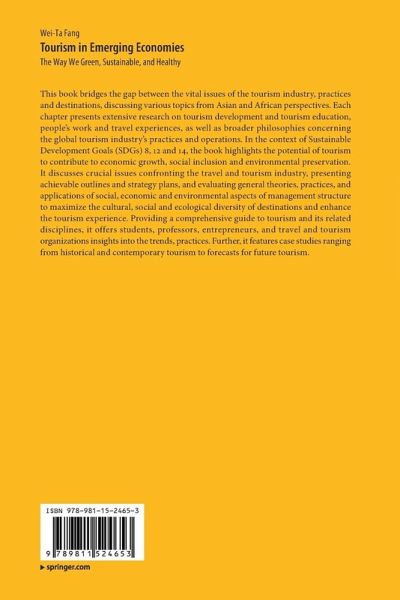 This book bridges the gap between the vital issues of the tourism industry, practices and destinations, discussing various topics from Asian and African perspectives. Each chapter presents extensive research on tourism development and tourism education, people's work and travel experiences, as well as broader philosophies concerning the global tourism industry's practices and operations. In the context of Sustainable Development Goals (SDGs) 8, 12 and 14, the book highlights the potential of tourism to contribute to economic growth, social inclusion and environmental preservation. It discusses crucial issues confronting the travel and tourism industry, presenting achievable outlines and strategy plans, and evaluating general theories, practices, and applications of social, economic and environmental aspects of management structure to maximize the cultural, social and ecological diversity of destinations and enhance the tourism experience. Providing a comprehensive guide to tourism and its related disciplines, it offers students, professors, entrepreneurs, and travel and tourism organizations insights into the trends, practices. Further, it features case studies ranging from historical and contemporary tourism to forecasts for future tourism.