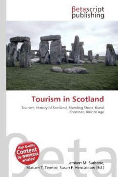 Please note that the content of this book primarily consists of articles available from Wikipedia or other free sources online. Scotland is a well-developed tourist destination, with tourism generally being responsible for sustaining 200,000 jobs mainly in the service sector, with tourist spending averaging at Pds. 4bn per year. Tourists from the United Kingdom make up the bulk of visitors to Scotland. In 2002 , for example, UK visitors made 18.5 million visits to Scotland, staying 64.5 million nights and spending Pds. 3.7bn. In contrast, overseas residents made 1.58 million visits to Scotland, staying 15 million nights and spending Pds. 806m. In terms of overseas visitors, those from the United States made up 24% of visits to Scotland, with the United States being the largest source of overseas visitors, and Germany (9%), France (8%), Canada (7%) and Australia (6%), following behind.