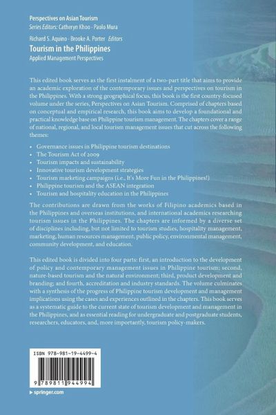 This edited book serves as the first instalment of a two-part title that aims to provide an academic exploration of the contemporary issues and perspectives on tourism in the Philippines. With a strong geographical focus, this book is the first country-focused volume under the series, Perspectives on Asian Tourism. Comprised of chapters based on conceptual and empirical research, this book aims to develop a foundational and practical knowledge base on Philippine tourism management. The chapters cover a range of national, regional, and local tourism management issues that cut across the…mehr