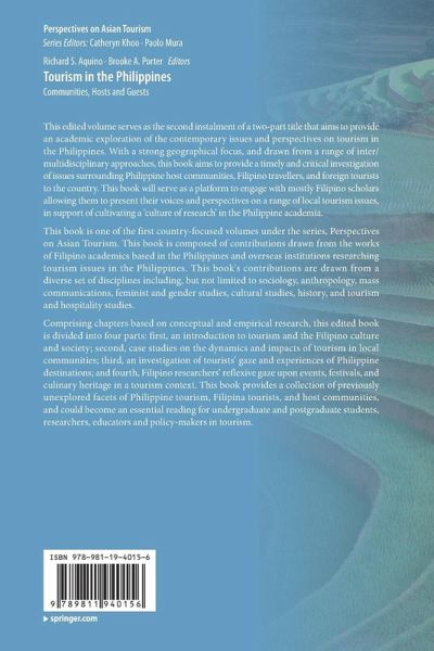 This book is one of the first country-focused volumes under the series, Perspectives on Asian Tourism. This book is composed of contributions drawn from the works of Filipino academics based in the Philippines and overseas institutions researching tourism issuesin the Philippines. This book's contributions are drawn from a diverse set of disciplines including, but not limited to sociology, anthropology, mass communications, feminist and gender studies, cultural studies, history, and tourism and hospitality studies.