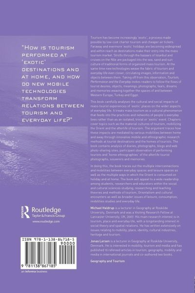Tourism has become increasingly 'exotic', a process made possible by low-cost charter tourism and cheaper air tickets. Faraway and evermore 'exotic' holidays are becoming widespread and within reach as destinations make their entry into the mass tourism market. Strolls through the bazaars of Istanbul and cruises on the Nile are packaged into the sea, sand and sun culture of traditional forms of organized mass tourism. At the same time new technologies weave the fabric of tourism and everyday life even closer, circulating images, information, and objects between them. Taking off from this observation, Tourism, Performance and the Everyday invites readers to follow the flow's of tourist desires, objects, meanings, photographs, fears, dreams and memories weaving together the spaces of and between Western Europe, Turkey and Egypt. Tourism, Performance and the Everyday carefully analyzes the cultural and social impacts of mass-tourist experiences of 'exotic' places on the wider aspects of everyday life. It treats mass-tourism as a cultural phenomenon that feeds into the practices and networks of peoples' everyday lives rather than as an isolated, trivial or 'exotic' event. It traces how these impacts are mediated by various mobilities between home and away through innovate mobile and ethnographic research methods at tourist destinations and the home of tourists. The book contains analysis of diaries, photographs, blogs and photo web sharing sites, participant observation of performing tourists and 'home ethnographies' of the afterlife tourist photographs, souvenirs and memories. In doing this, the book traces out the multiple interconnections and mobilities between everyday spaces and leisure spaces as well as the multiple ways in which the Orient is consumed on holiday and at home. The book appeals to a wide audience among students, researchers and educators within the social and cultural sciences studying, researching and teaching theories and methods of tourism, Orientalism and cultural encounters as well as broader issues of leisure, consumption and everyday life.