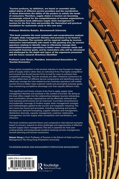 Fierce global competition in the tourism industry is now focused on integral parts of supply chains rather than on individual firms. The highly competitive environment has forced tourism firms to look for ways to enhance their competitive advantage. Tourism products are often viewed by consumers as a value-added chain of different service components and identifying ways to effectively manage the interrelated tourism business operations will enable tourism firms to better meet customer needs and accomplish business goals thus maintaining competitive advantage over their equally efficient rivals. This significant and timely volume is the first to apply supply chain management theories and practices in the context of tourism. By doing so the book offers insight into the relationships between tourism enterprises, how coordination across organizations can be effectively achieved and how business performance can be improved. It provides comprehensive and systematic coverage of modern supply chain management concepts and methodologies applied to the tourism and hospitality industries. The text covers key issues and principles including: marketing and product development, demand forecasting, supplier selection and management, distribution channels, capacity management, customer relationship management, tourism supply chain competition and coordination, and e-tourism. The book combines essential theory and comparative international examples based on primary research to show challenges and opportunities of effective tourism supply chain management. This text is essential for final year undergraduate and postgraduate students studying Tourism Management, Tourism Planning and Tourism Economics.