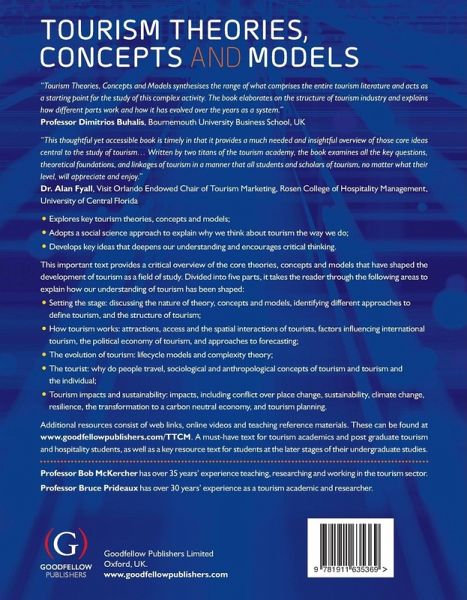 A critical overview of the core theories, concepts and ideas that have shaped the way we think about tourism. Divided into six parts, it looks at the important key theories, models and concepts, ensuring clear understanding and the ability for critical thinking.