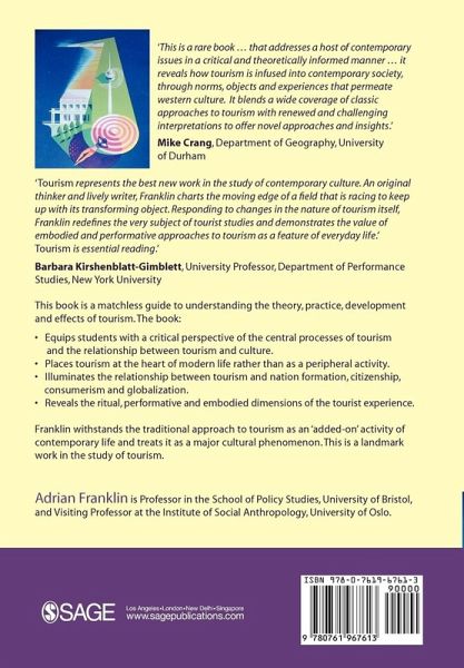 `Argued with a real verve, it makes a plea to rethink the role of tourism in modernity seeing it not as a fleeting and marginal element, but as something enduring, emblematic and constitutive of contemporary society. Tourism is seen as a key element of modern life, not an escape from it' - Mike Crang, Department of Geography, University of DurhamTourism: equips students with a critical perspective of the central processes of tourism and the relationship between tourism and culture; places tourism at the heart of modern life rather than as a peripheral feature added on after work; illuminates the relationship between tourism and nation formation, citizenship, consumerism and globalization; and reveals the ritual, performative and embodied dimensions of the tourist experience.