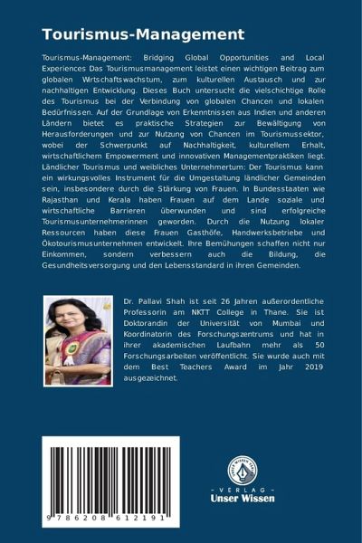 Tourismus-Management: Bridging Global Opportunities and Local Experiences Das Tourismusmanagement leistet einen wichtigen Beitrag zum globalen Wirtschaftswachstum, zum kulturellen Austausch und zur nachhaltigen Entwicklung. Dieses Buch untersucht die vielschichtige Rolle des Tourismus bei der Verbindung von globalen Chancen und lokalen Bedürfnissen. Auf der Grundlage von Erkenntnissen aus Indien und anderen Ländern bietet es praktische Strategien zur Bewältigung von Herausforderungen und zur Nutzung von Chancen im Tourismussektor, wobei der Schwerpunkt auf Nachhaltigkeit, kulturellem Erhalt, wirtschaftlichem Empowerment und innovativen Managementpraktiken liegt. Ländlicher Tourismus und weibliches Unternehmertum: Der Tourismus kann ein wirkungsvolles Instrument für die Umgestaltung ländlicher Gemeinden sein, insbesondere durch die Stärkung von Frauen. In Bundesstaaten wie Rajasthan und Kerala haben Frauen auf dem Lande soziale und wirtschaftliche Barrieren überwunden und sind erfolgreiche Tourismusunternehmerinnen geworden. Durch die Nutzung lokaler Ressourcen haben diese Frauen Gasthöfe, Handwerksbetriebe und Ökotourismusunternehmen entwickelt. Ihre Bemühungen schaffen nicht nur Einkommen, sondern verbessern auch die Bildung, die Gesundheitsversorgung und den Lebensstandard in ihren Gemeinden.