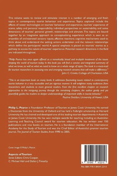 This volume seeks to review and stimulate interest in emerging and fresh topics in contemporary tourist behaviour and experience. Topics explored include the effects of newer technologies on tourists' behaviour and experience, tourists' experience of scams, safety and personal responsibility and individual perspectives on sustainability.