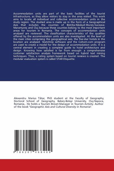 Accommodation units are part of the basic facilities of the tourist infrastructure, as they allow visitors to stay in the area visited. This work aims to locate all individual and collective accommodation units in the study region. The studied area is made up in the form of a Geographical Axis that includes the counties of Bistri a-Nasaud-Mure -Suceava-Maramure and Cluj because these counties belong to the most important areas for tourism in Romania. The concepts of accommodation units analysed are reviewed. The classification characteristics of the qualities offered by the accommodation units are also investigated. At the level of the main cities comprising the geographical axis, the five-star hotels in the location are analysed. SketchUp software and the Cohom.com program are used to create a model for the design of accommodation units. It is a central element in creating a complete guide to hotel architecture and design. Knowing how satisfied is far from enough: a comprehensive customer satisfaction analysis framework based on hybrid text mining techniques. Thus, a rating system based on tourist reviews is created. The modular evaluation system is called STAR Etiquette.