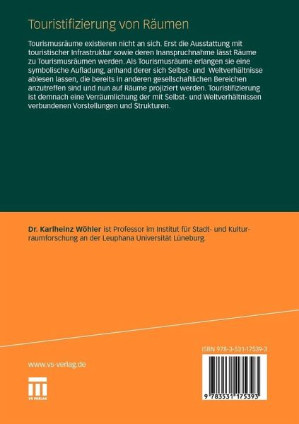 Tourismusräume existieren nicht an sich. Erst die Ausstattung mit touristischer Infrastruktur sowie deren Inanspruchnahme lässt Räume zu Tourismusräumen werden. Als Tourismusräume erlangen sie eine symbolische Aufladung, anhand derer sich Selbst- und Weltverhältnisse ablesen lassen, die bereits in anderen gesellschaftlichen Bereichen anzutreffen sind und nun auf Räume projiziert werden. Touristifizierung ist demnach eine Verräumlichung der mit Selbst- und Weltverhältnissen verbundenen Vorstellungen und Strukturen.