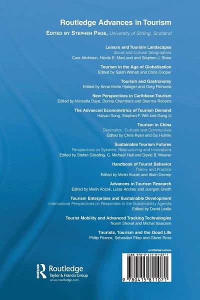 Philip Pearce is a Foundation Professor of Tourism at James Cook University in Townsville, Australia and was appointed the First Professor of Tourism in Australia. Sebastian Filep is a Research Fellow in Travel and Wellbeing at the Centre for Tourism and Services Research of Victoria University in Melbourne, Australia. Glenn Ross is an Adjunct Professor of Tourism at James Cook University.