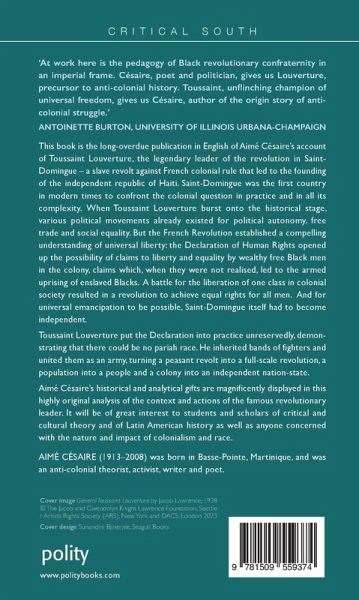 This book is the long-overdue publication in English of Aimé Césaire's account of Toussaint Louverture, the legendary leader of the revolution in Saint-Domingue - a slave revolt against French colonial rule that led to the founding of the independent republic of Haiti. Saint-Domingue was the first country in modern times to confront the colonial question in practice and in all its complexity. When Toussaint Louverture burst onto the historical stage, various political movements already existed for political autonomy, free trade and social equality. But the French Revolution established a compelling understanding of universal liberty: the Declaration of Human Rights opened up the possibility of claims to liberty and equality by wealthy free Black men in the colony, claims which, when they could not be realized, led to the armed uprising of enslaved Blacks. A battle for the liberation of one class in colonial society resulted in a revolution to achieve equal rights for all men. And for universal emancipation to be possible, Saint-Domingue itself had to become independent. Toussaint Louverture put the Declaration into practice unreservedly, demonstrating that there could be no pariah race. He inherited bands of fighters and united them as an army, turning a peasant revolt into a full-scale revolution, a population into a people and a colony into an independent nation-state. Aimé Césaire's historical and analytical gifts are magnificently displayed in this highly original analysis of the context and actions of the famous revolutionary leader. It will be of great interest to students and scholars of critical and cultural theory and of Latin American history as well as anyone concerned with the nature and impact of colonialism and race.