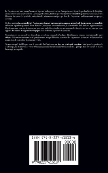 Tout ce que vous devez savoir sur le Capricorne est une continuation de la série du zodiaque, présentant chaque signe du zodiaque, leurs traits de caractère uniques, et comment ces traits s'intègrent dans leur passé, leur présent et leur futur. J'encourage fortement les curieux à prendre au sérieux ce qui est écrit dans ces pages et à laisser ces informations vous guider à travers la croissance et les défis. Ces livres regorgent d'informations. En fait, il vous sera difficile de trouver d'autres livres de référence sur le zodiaque avec les informations que nous avons compilées. Jetez un ¿il à notre table des matières, puis comparez-la à d'autres. Il n'y a aucune comparaison possible. Je reconnais en toute transparence avoir utilisé des modèles pour une bonne partie, mais étant donné la nature souvent répétitive du sujet, cela devient une nécessité. J'ai mélangé certaines dates de naissance pour éviter une expérience de lecture monotone, j'espère donc que cela vous sera utile. En tant que livre de référence, il est également divertissant de comparer vos amis et votre famille à ce qui est écrit, et je peux vous garantir que l'exactitude, parfois, est presque effrayante. Prenez du bon temps et amusez-vous bien !