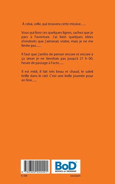 Il faut que j'arrête de penser encore et encore à ça sinon je ne tiendrais pas jusqu'à 21 h 00, heure de passage à l'acte.......