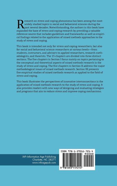 A volume in Research on Stress and Coping in Education Gordon S. Gates, Walter H. Gmelch, and Mimi Wolverton, Series Editors Research on stress and coping phenomena has been among the most widely studied topics in social and behavioral sciences during the past several decades. Notwithstanding, the authors in this book have expanded the base of stress and coping research by providing a valuable reference source that includes guidelines and frameworks as well as empirical findings related to the application of mixed methods approaches to the study of stress and coping. This book is intended not only for stress and coping researchers, but also for social and behavioral science researchers at various levels-from students, instructors, and advisors to applied researchers, research methodologists, and theorists. The 15 chapters are divided into three distinct sections. The five chapters in Section I focus mainly on topics pertaining to the conceptual and theoretical aspects of mixed methods research in the study of stress and coping. The five chapters in Section II address the major methodological issues of mixed methods research. Section III presents five empirical studies of mixed methods research as applied to the field of stress and coping. This book illustrates the perspectives of innovative interconnections in the application of mixed methods research to the study of stress and coping. It also provides readers with new ways of designing and evaluating strategies and programs that aim to reduce stress and improve coping mechanisms.