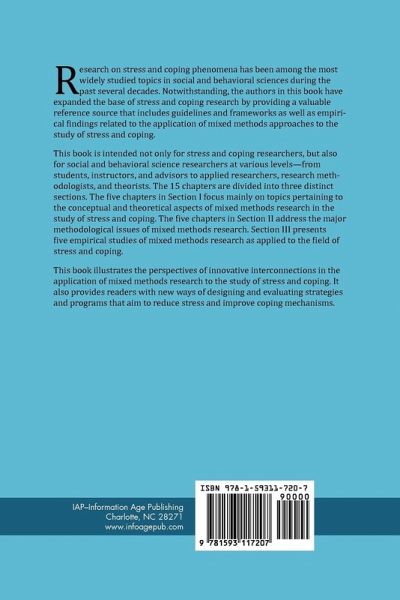 A volume in Research on Stress and Coping in Education Gordon S. Gates, Walter H. Gmelch, and Mimi Wolverton, Series Editors Research on stress and coping phenomena has been among the most widely studied topics in social and behavioral sciences during the past several decades. Notwithstanding, the authors in this book have expanded the base of stress and coping research by providing a valuable reference source that includes guidelines and frameworks as well as empirical findings related to the application of mixed methods approaches to the study of stress and coping. This book is intended not only for stress and coping researchers, but also for social and behavioral science researchers at various levels-from students, instructors, and advisors to applied researchers, research methodologists, and theorists. The 15 chapters are divided into three distinct sections. The five chapters in Section I focus mainly on topics pertaining to the conceptual and theoretical aspects of mixed methods research in the study of stress and coping. The five chapters in Section II address the major methodological issues of mixed methods research. Section III presents five empirical studies of mixed methods research as applied to the field of stress and coping. This book illustrates the perspectives of innovative interconnections in the application of mixed methods research to the study of stress and coping. It also provides readers with new ways of designing and evaluating strategies and programs that aim to reduce stress and improve coping mechanisms.